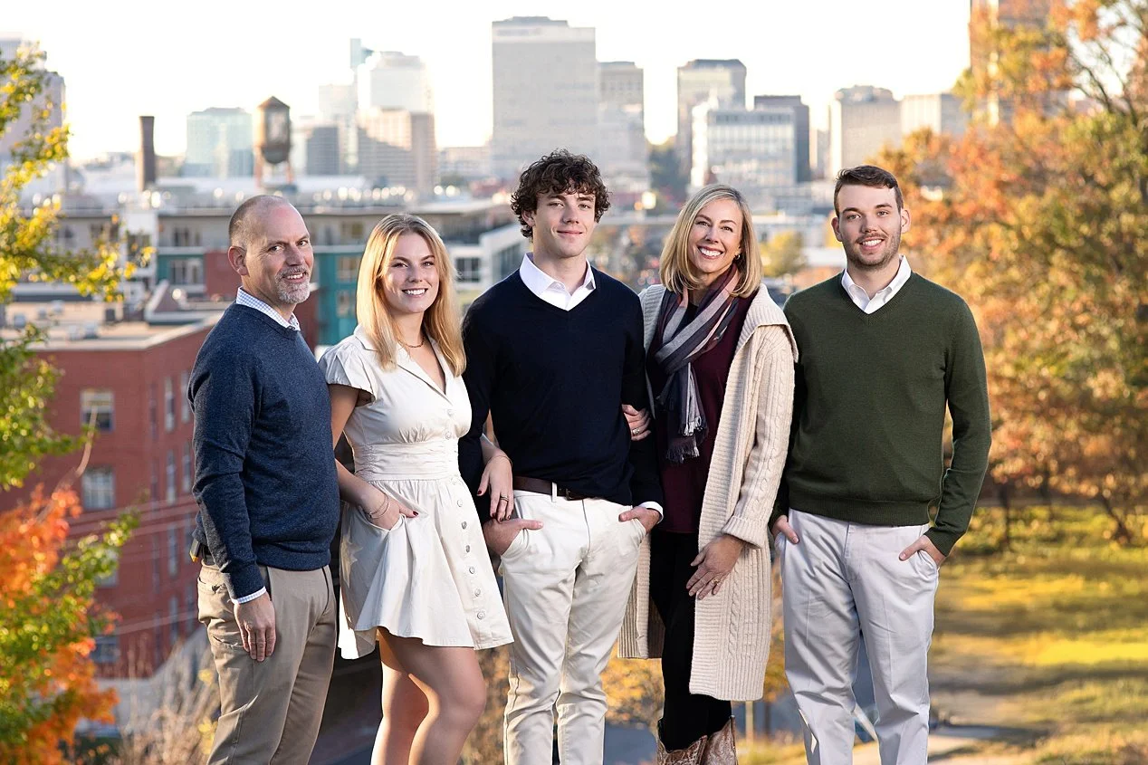 Their latest family portrait session took place at one of Richmond's most iconic spots, Libby Hill Park in Church Hill, where we spent the evening taking in the beautiful views of the city and surrounding landscape. It’s always a joy to capture the natural connections between family members in such a scenic setting, but this session had an added layer of sentimentality—one that’s familiar to many families with grown children.