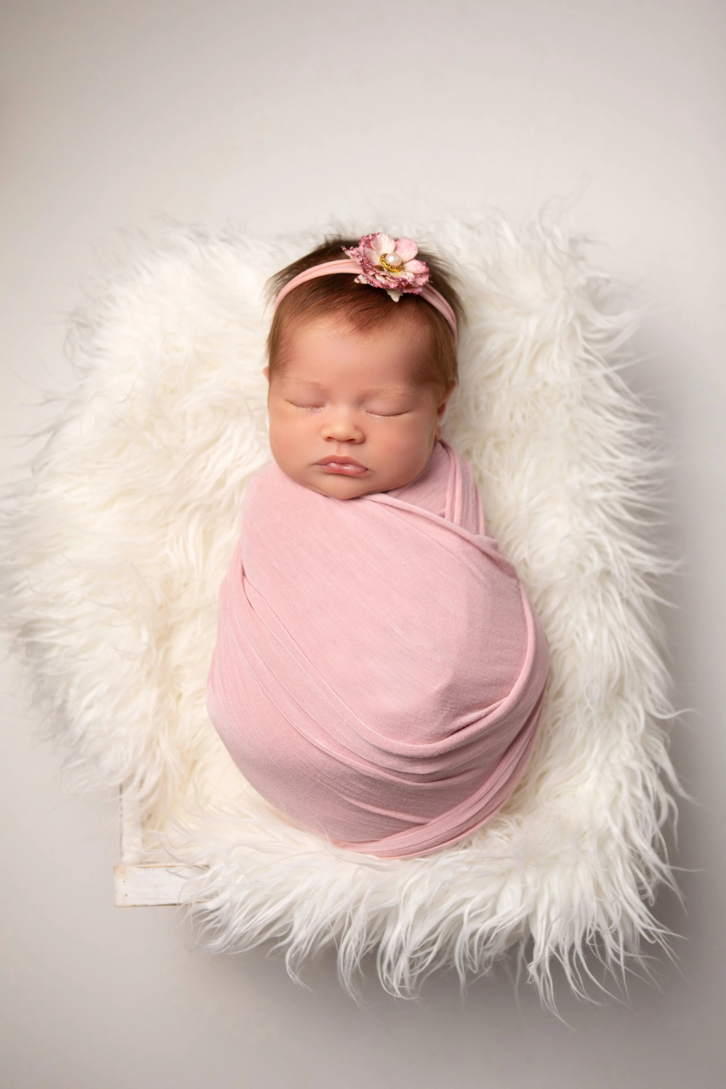 Newborn portraits are all about creating a space where baby feels safe and at ease. By focusing on calm tones and minimal props, we’re able to keep the attention on all those tiny details, her lashes, her button nose, and the way she gently curls up as she sleeps. These are moments that pass by so quickly, and having them preserved in a beautiful image allows families to keep this chapter close forever.