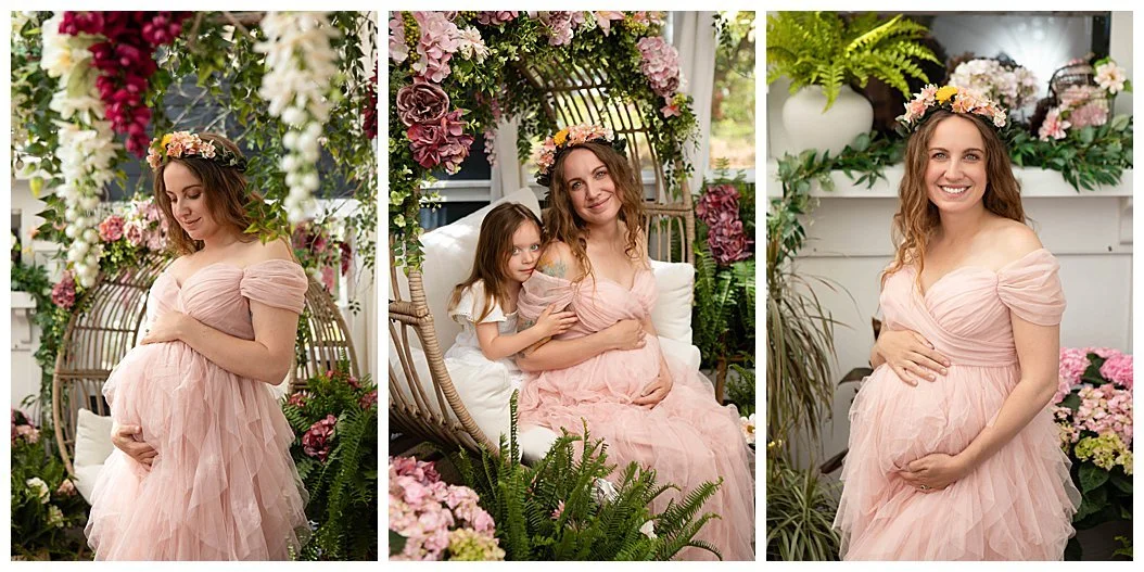 The Gown Collection - The full session includes access to my extensive maternity gown and flower crown collection, available in a variety of sizes. Every gown can also be sized down with clothing clips, so the perfect fit is always within reach. VIEW GOWNS HERE